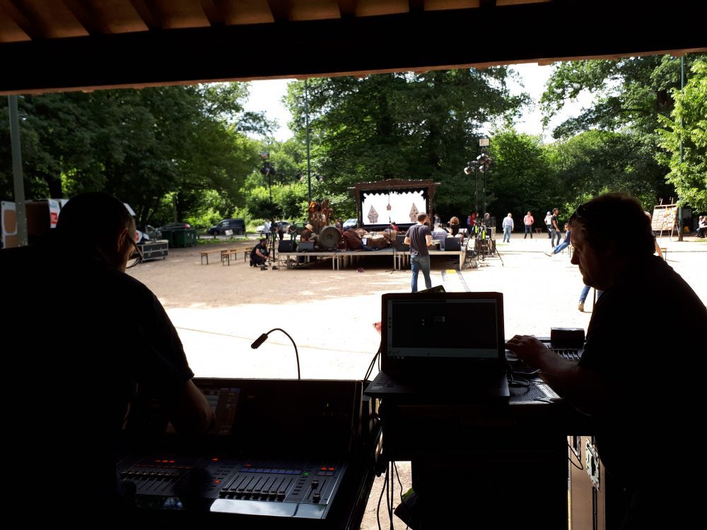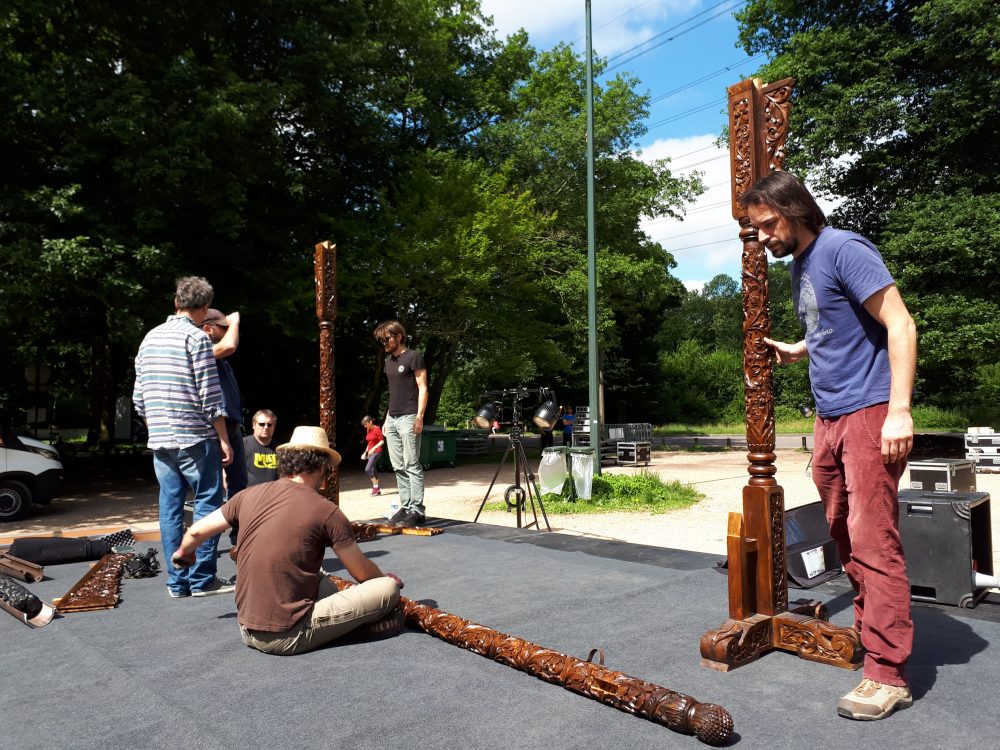 Et puis il y avait aussi un peu de travail sur le volet « théâtre et marionnette ». Après la semaine de résidence de début juillet, il y avait un travail sur le son à faire. Pour le moment, nous avions répété en envoyant les musiques et bruits en direct en suivant le rythme des comédiens. Lors des représentations, ce ne sera plus possible. Il fallait donc fixer des pistes son que les comédiens, cette fois-ci, suivront eux. C’est un travail pas évident car il faut quand même se caler sur un timing proche de celui des répétitions précédentes. Et puis, ajoutons à cela que ce n’est pas mon métier principal et que je n’ai pas des connaissances techniques fabuleuses… Mais bon, j’espère que cela fera l’affaire !